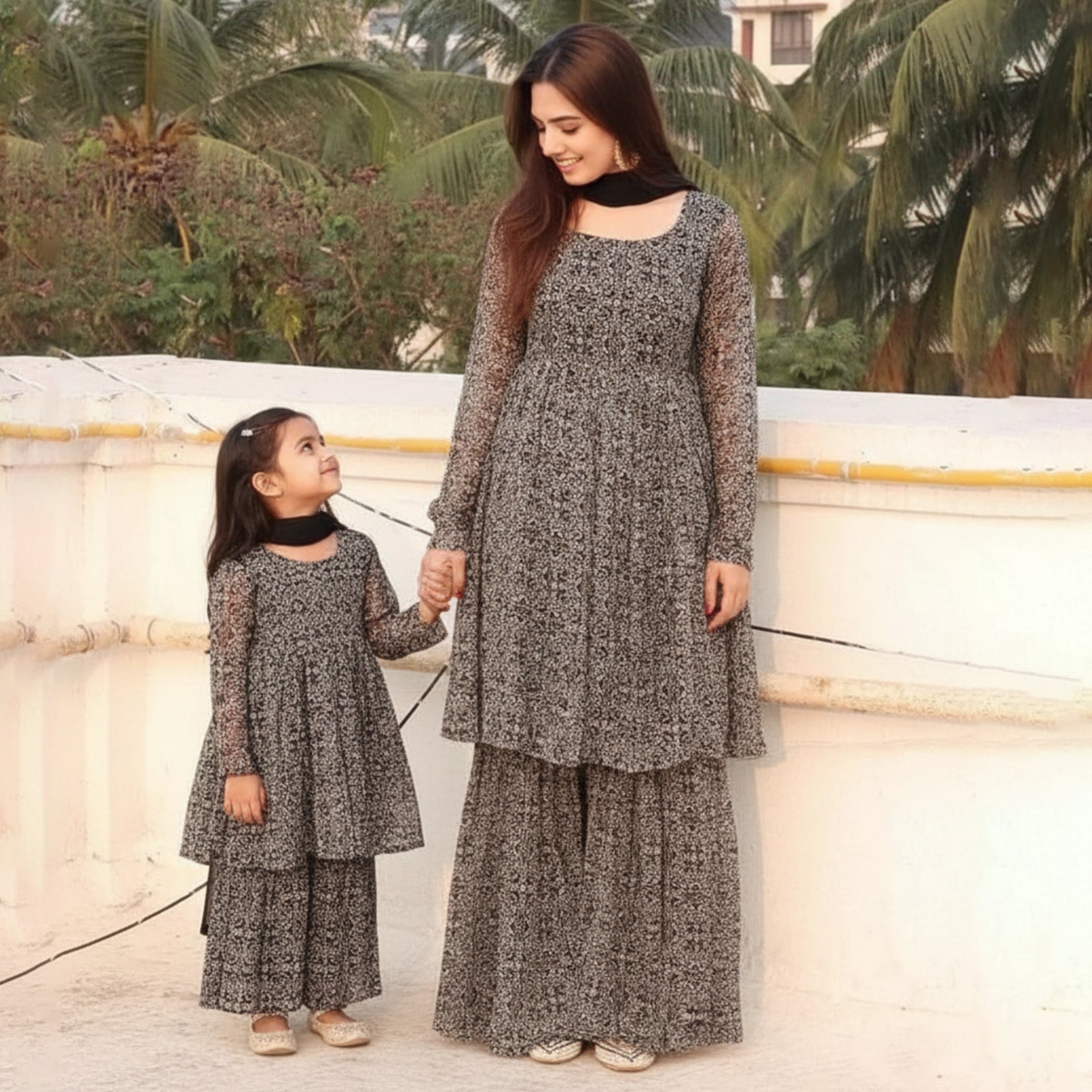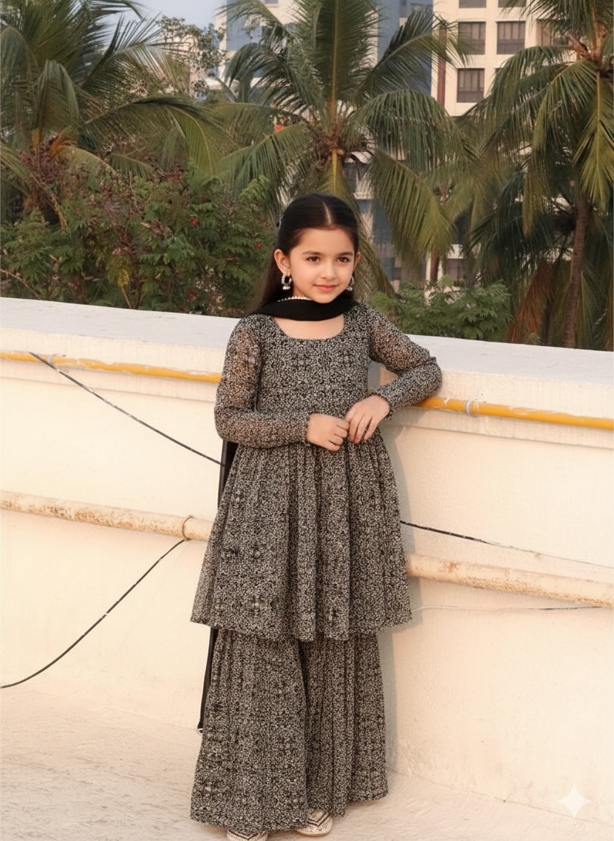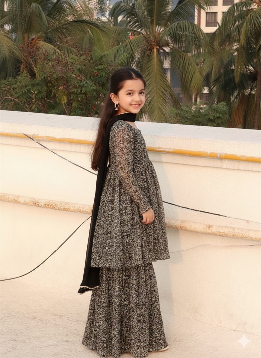 Black Chiffon Sharara Suit Set Combo: Timeless Elegance
